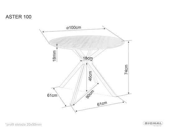 Стол обеденный SIGNAL ASTER дуб/черный мат 100