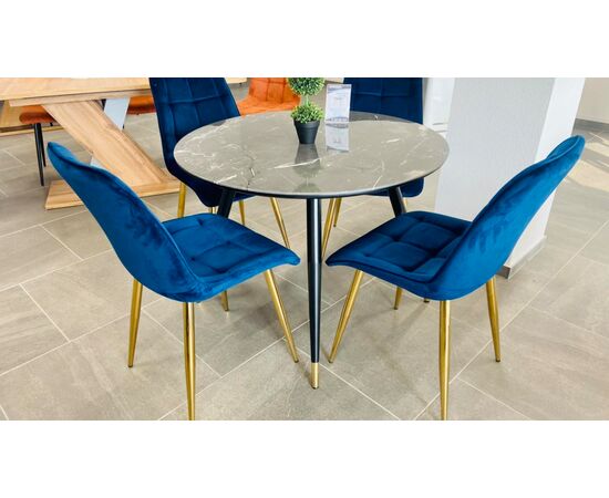 Стол обеденный SIGNAL CYRYL II эффект черного камня/черный/золотой 100