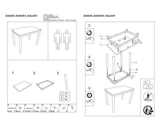 Стол обеденный SIGNAL DAMAR белый 80/60
