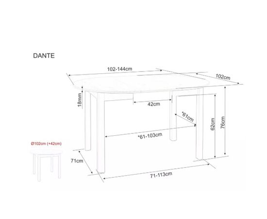 Стол обеденный SIGNAL DANTE кашемир/дуб кремона 102-144/102