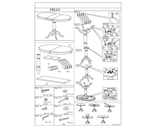 Стол обеденный SIGNAL DELLO белый/белый 100-129/70