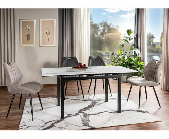 Стол обеденный SIGNAL GD017 белый мрамор/черный мат 110-170/74