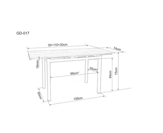 Стол обеденный SIGNAL GD017 серый/хром 110-170/74