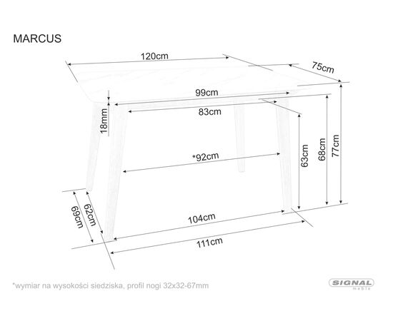 Стол обеденный SIGNAL MARCUS эффект белого мрамора/дуб 120