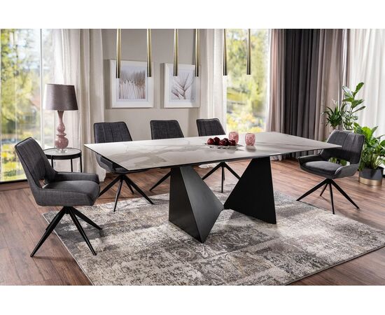 Стол обеденный SIGNAL PETERSON Ceramic Statuario Venato белый/черный мат 160-240/90