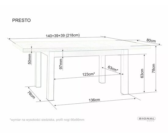 Стол обеденный SIGNAL PRESTO дуб артизан/черный 140-218/80