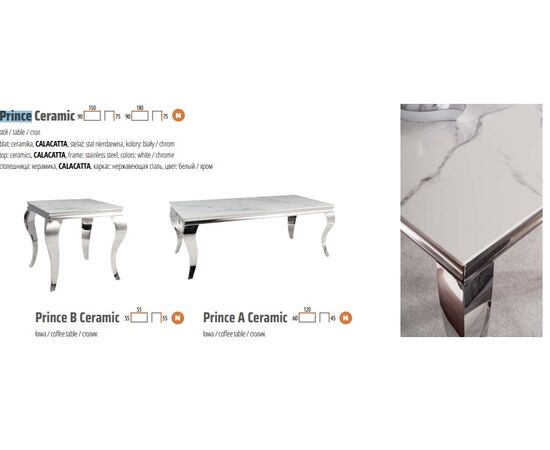 Стол обеденный SIGNAL PRINCE Ceramic Calacatta белый/хром 150/90