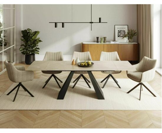 Стол обеденный SIGNAL SALVADORE Ceramic Diamond Cream кремовый/черный мат 160-240/90