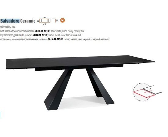Стол обеденный SIGNAL SALVADORE Ceramic Sahara Noir черный/черный мат 160-240/90