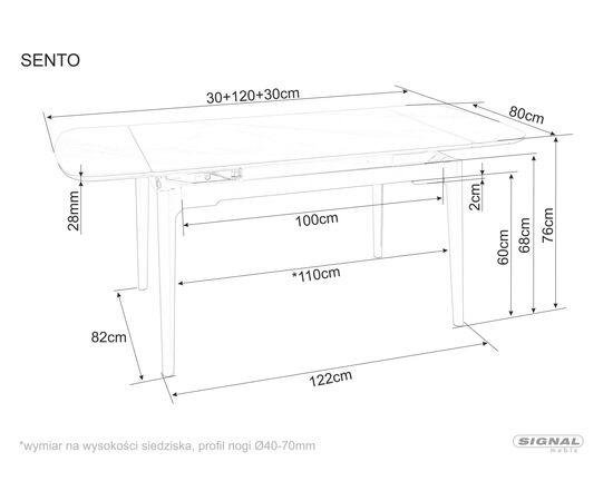 Стол обеденный SIGNAL SENTO серый лак/черный 120-180/80