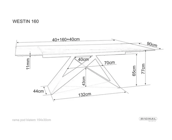 Стол обеденный SIGNAL WESTIN III Ceramic 160 белый/черный матовый 160-240/90