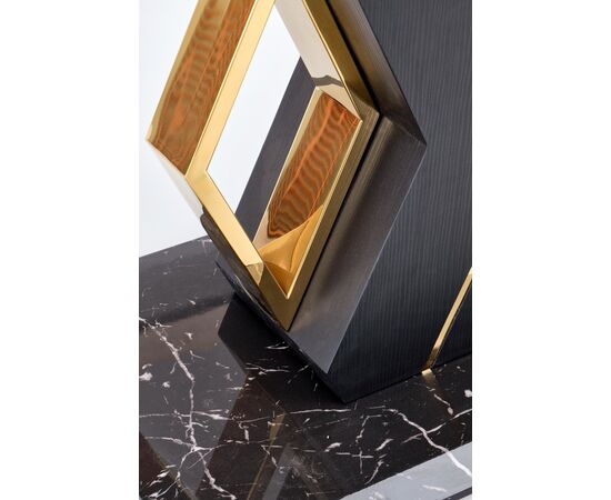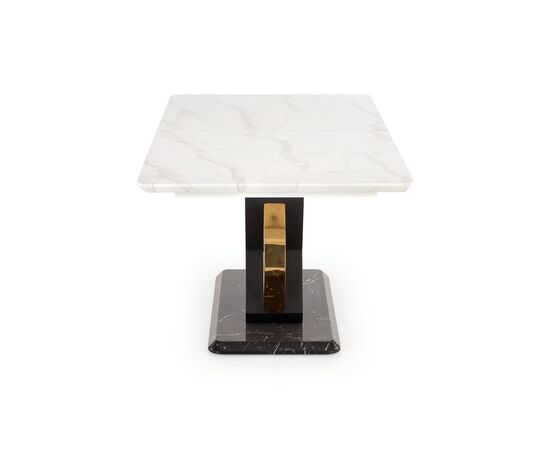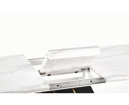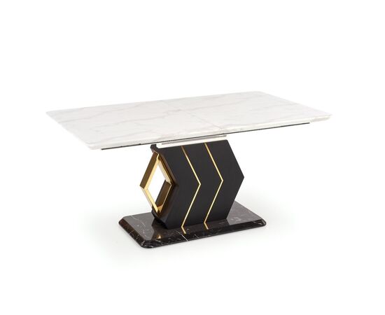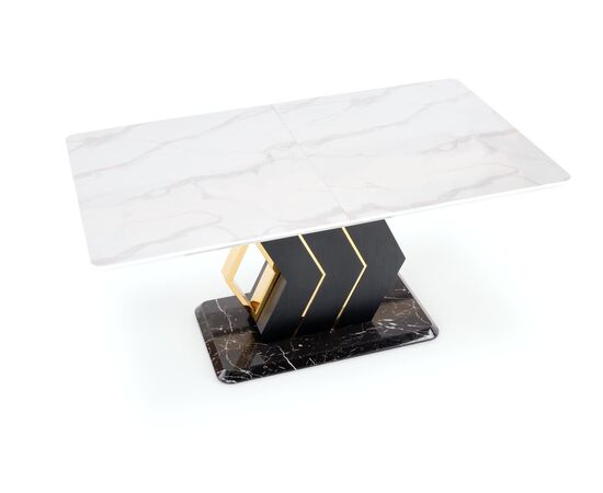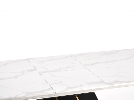 Стол обеденный VINCENZO раскладной, белый мрамор/черный/золотой, 160-200/90/77
