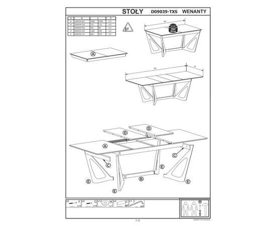 Стол обеденный WENANTY раскладной, орех американский, 160-240/100/77