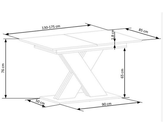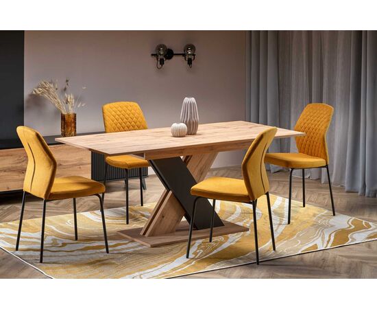 Стол обеденный XARELTO раскладной, дуб вотан/черный, 130-175/85/76
