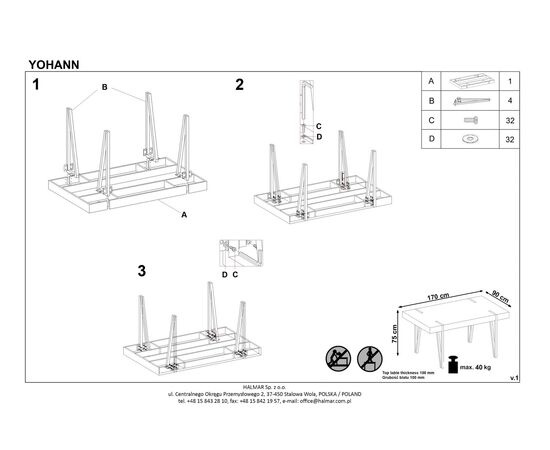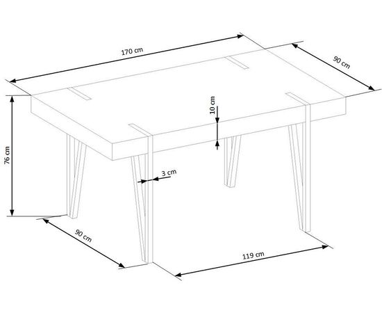 Стол обеденный YOHANN дуб сан ремо/черный, 170/90/76