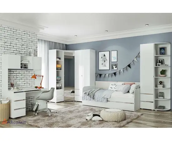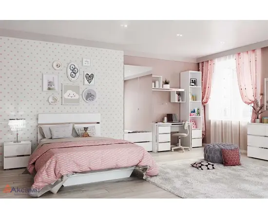 Стол письменный с тумбой Линда 33 (белый гладкий шелк / белый снег глянец)