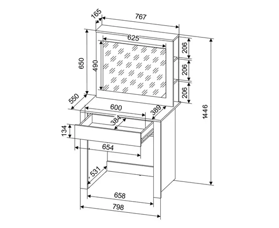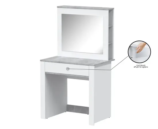 Выдвижной ящик с направляющими с встроенным механизмом push-to-open, головной щит с боковыми нишами.