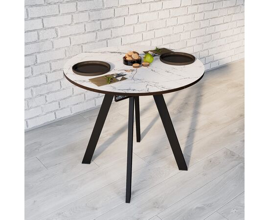 Стол ВВР Элип-1 мрамор белый/черный профиль, стекло ф/п