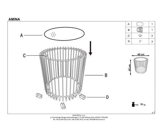 Стол журнальный AMINA дымчатый/черный, 45/45