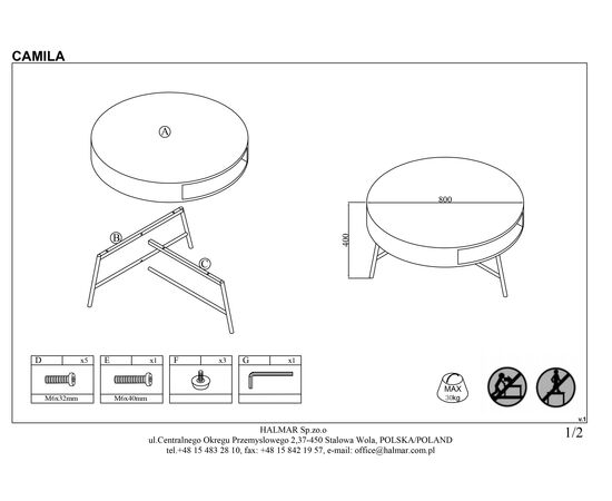 Стол журнальный CAMILA дуб золотой/черный, 80/41