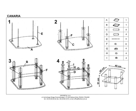 Стол журнальный CANARIA бесцветный, 45/45/51