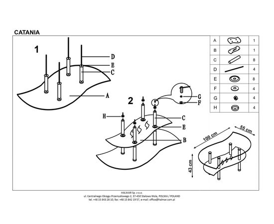 Стол журнальный CATANIA бесцветный/хром, 100/55/43