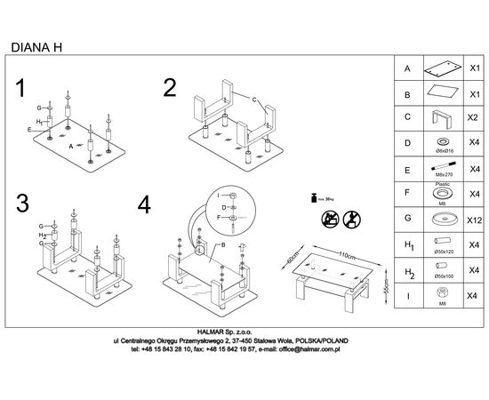 Стол журнальный DIANA H прозрачный/дуб сонома, 110/60/55