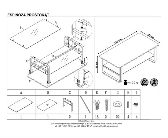 Стол журнальный ESPINOZA PROSTOKAT натуральный дуб/черный, 120/60/45
