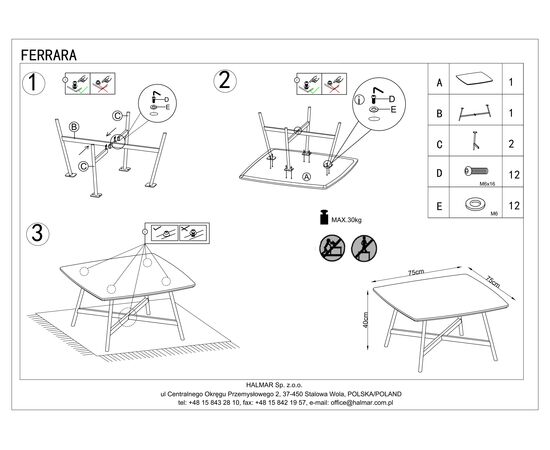 Стол журнальный FERRARA серый мрамор/черный, 75/41