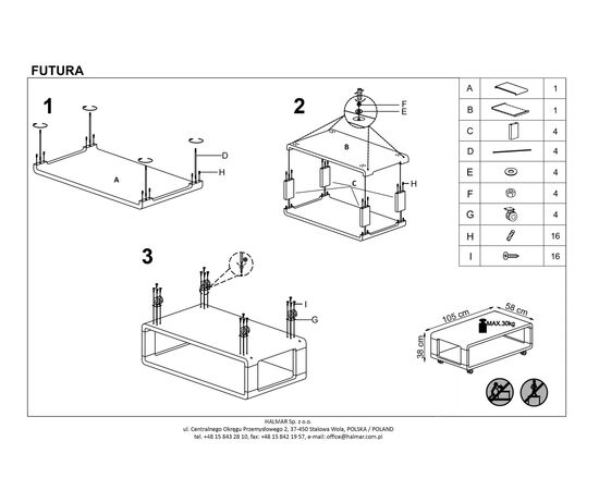 Стол журнальный FUTURA белый/белый, 105/58/38
