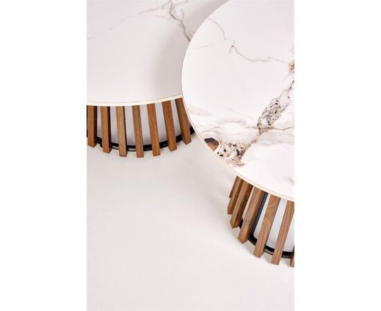 Стол журнальный HALMAR CARINA бежевый мрамор/орех