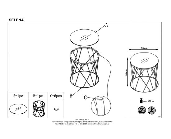 Стол журнальный SELENA дымчатый/хром, 55/55