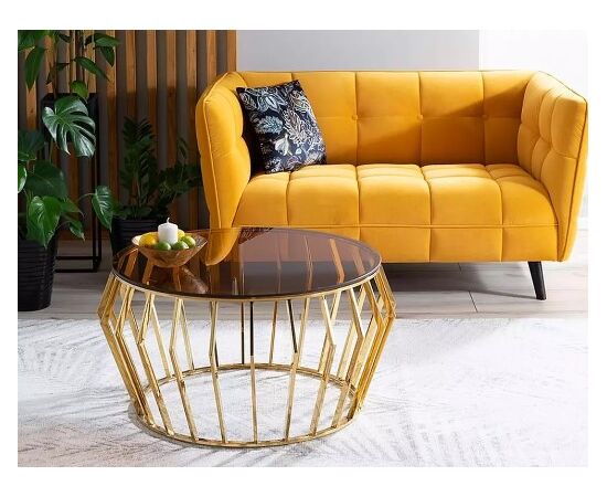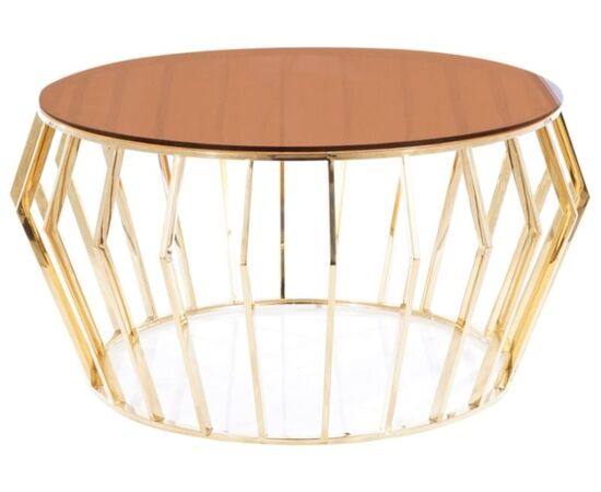 Стол журнальный SIGNAL ARIANA A дымчатый янтарь/золотой, d80