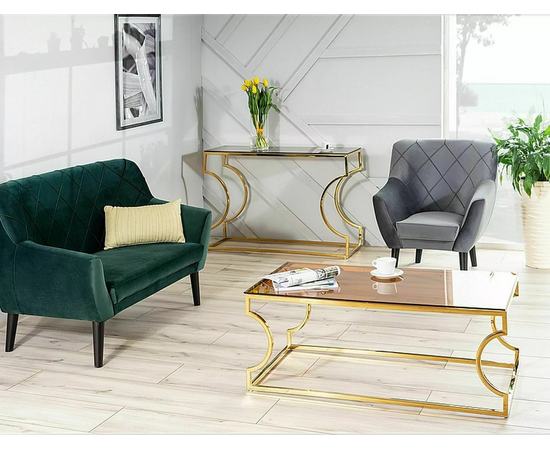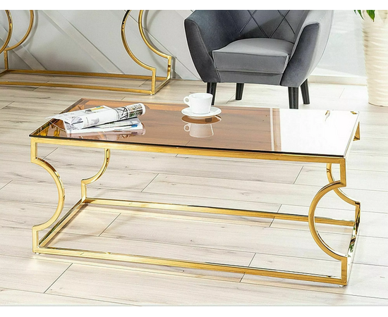 Стол журнальный SIGNAL KENZO A дымчатый янтарь/золотой, 120/60