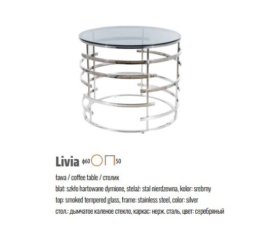 Стол журнальный SIGNAL LIVIA дымчатый/серебряный FI 60