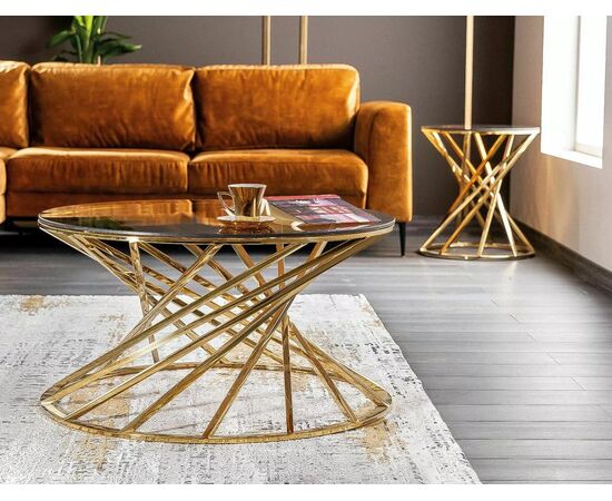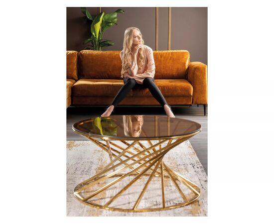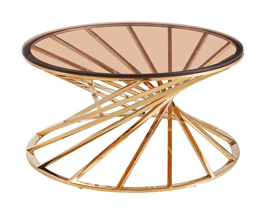 Стол журнальный SIGNAL OTTAVIA A дымчатый янтарь/золотой, d80