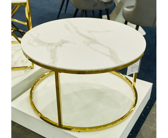 Стол журнальный SIGNAL SABINE эффект белого мрамора/золотой, d80
