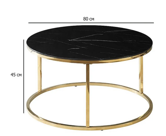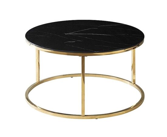 Стол журнальный SIGNAL SABINE эффект черного мрамора/золотой, d80