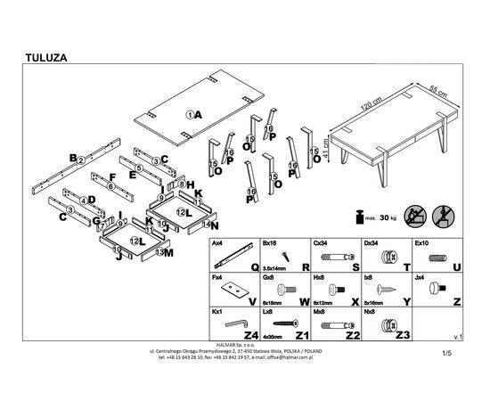 Стол журнальный TULUZA орех медовый/черный, 120/55/41