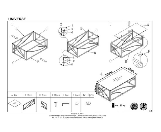 Стол журнальный UNIVERSE дымчатый/золотой, 120/60/45