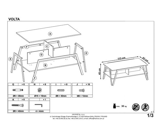 Стол журнальный VOLTA дуб золотой/черный, 113/63/45