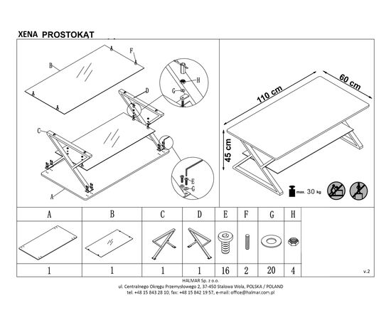 Стол журнальный XENA PROSTOKAT натуральный дуб/черный, 110/60/45