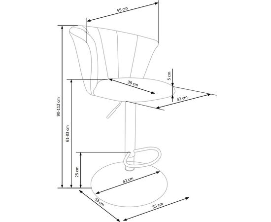 Высота стула регулируется в диапазоне от 900 мм до 1120 мм.