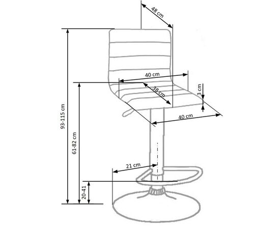 Высота стула регулируется в диапазоне от 930 мм до 1150 мм.