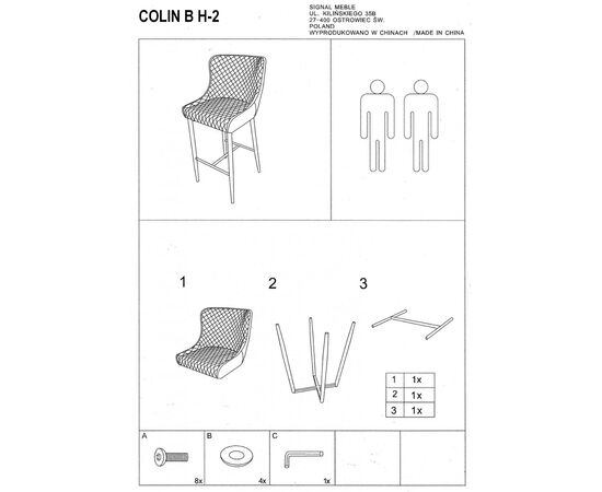 Стул барный SIGNAL COLIN B H-2 Velvet Bluvel 14 серый/черный