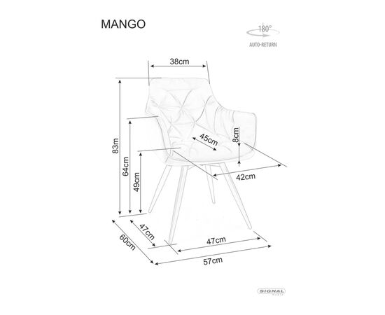 Стул SIGNAL MANGO Velvet Bluvel 14 серый/черный, поворотный