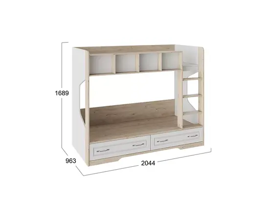 Тоскана ТД-353.11.01 Кровать двухъярусная (белый жемчуг/гикори джексон)