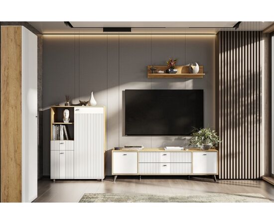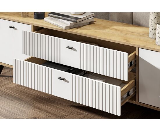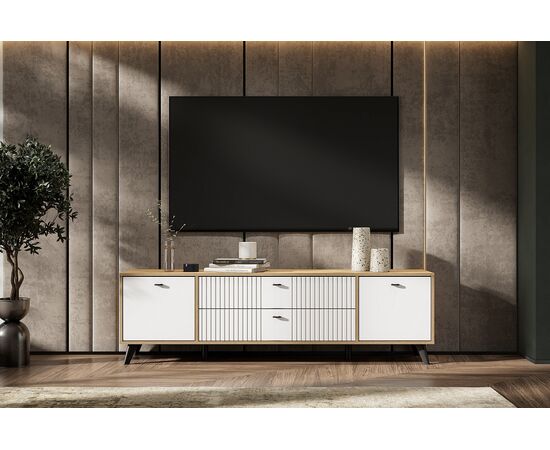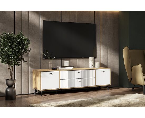 Тумба для ТВ SV-МЕБЕЛЬ (МС Милан К) Дуб Золотой/Белый матовый, с ящиками