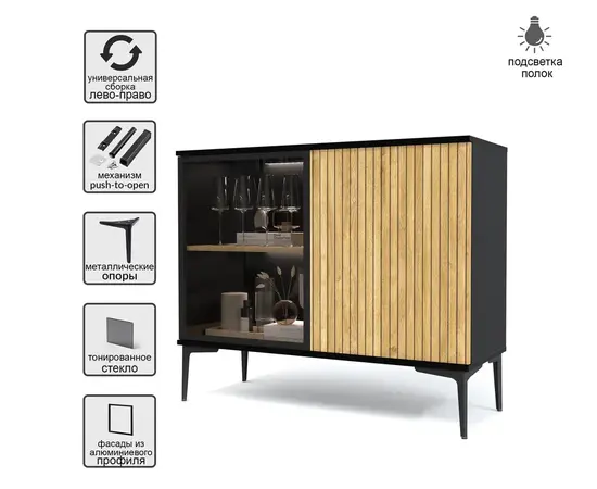 - ЛДСП 16 мм Черный; оклеивается кромкой: черной 0,45 мм;