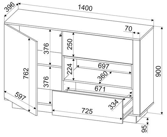 Универсальная сборка, двери механизм push-to-open, выдвижные ящики с направляющими с встроенным механизмом push-to-open, подлежит креплению к стене.